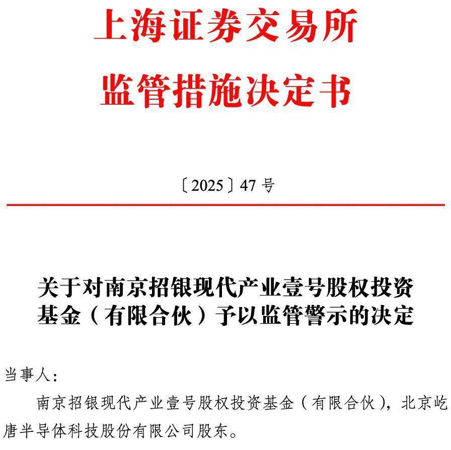 需要注意的是,今年8月,南京招银被监管警示,原因是17名员工“隐身”持股屹唐股份。